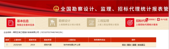 【綿陽正信·招標(biāo)部消息】根據(jù)四川省住房和城鄉(xiāng)建設(shè)廳及綿陽市住建局招標(biāo)科要求,全市各招標(biāo)代理企業(yè)對2019年工程招標(biāo)代理統(tǒng)計報表報送的通知。我公司員工接到通知后,及時對2019年企業(yè)基本情況、人員情況、財務(wù)情況一一匯總并導(dǎo)入到系統(tǒng)。經(jīng)市招標(biāo)部門審核并通過。